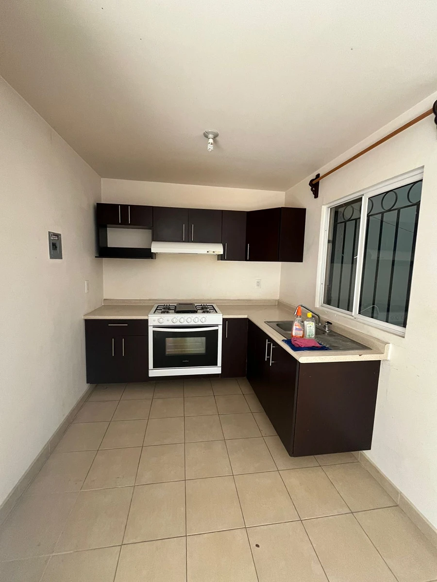 La propiedad cuenta con 3 recámaras, cocina integral, patio de servicio amplio y cochera para 2 autos, además de protecciones y tanque estacionario.