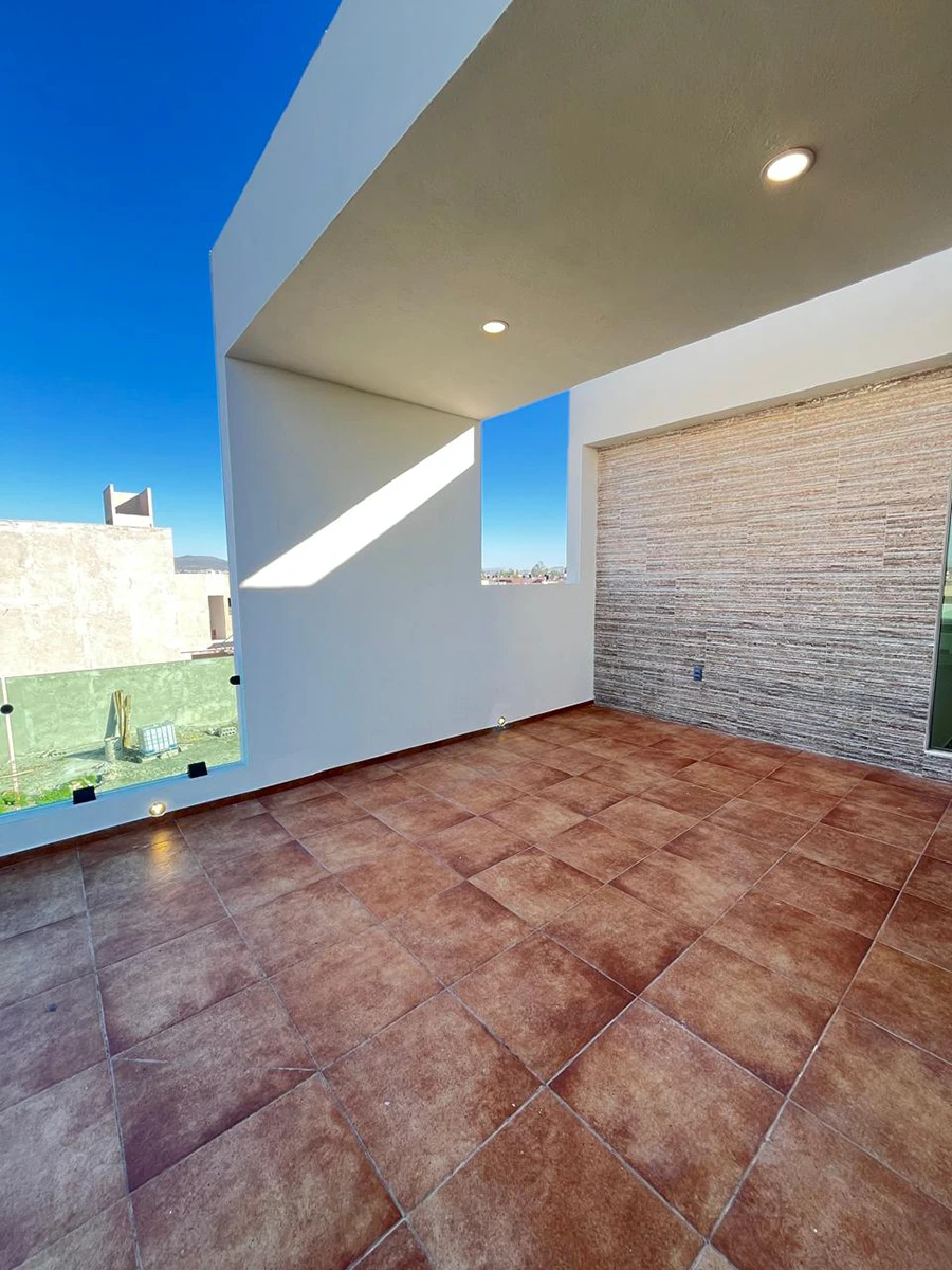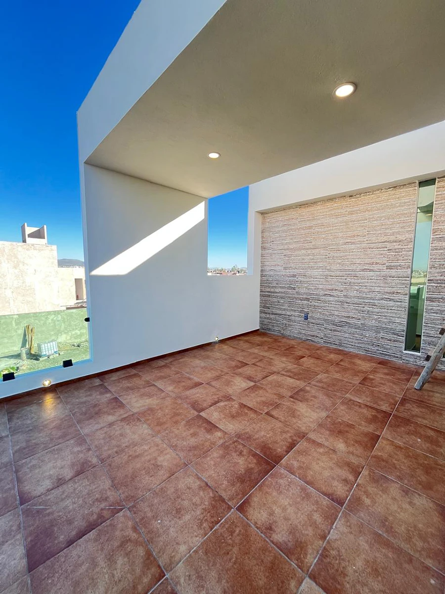 Con 262 m² de construcción, la casa ofrece 4 recámaras (incluyendo una en planta baja), cocina con isla, 3 baños completos, family room, terraza abierta, barra de bar y cuarto de servicio, además de cisterna de 7,000 L y tanque estacionario.